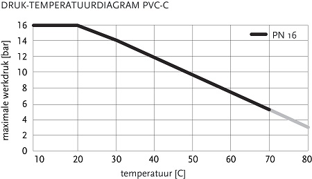Figure 2 Figure 2 shows the maximum working pressure for PN 16 fittings in relation to a service life of 25 years. The values for PVC-C as from 70 °C apply to a service life of 10 years.